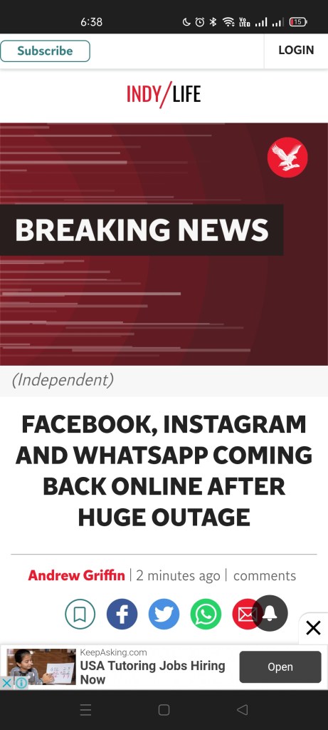Woke up earlier today and Facebook and IG are not working 🥺